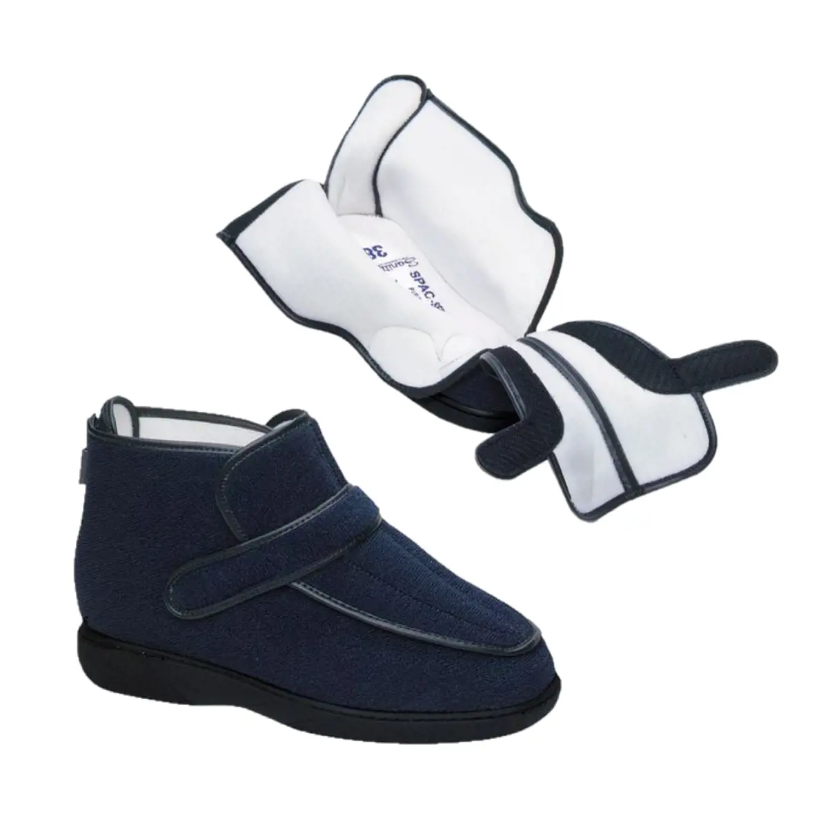 De verbandschoen is een tijdelijke schoen die in bepaalde omstandigheden gedragen kan worden bijvoorbeeld bij een herstelperiode na een chirurgische ingreep of een traag en slecht genezende wond. Dit kan dan een uitkomst bieden om mobiel te blijven. De verbandschoen is dusdanig vervaardigd zodat hij in zijn geheel te openen is aan de voor- en achterzijde, zodat u makkelijk kunt instappen. Met de klittenband kunt u de verbandschoenen aan passen aan de dikte van uw voeten of wanneer ze bijvoorbeeld tijdelijk ingezwachteld zijn. Het zijn warme, comfortabele verbandschoenen en kunnen ook buiten als schoenen gedragen worden. De zool is flexibel, stabiel en voorzien van een antislip zool. De verbandschoen kan voorzien worden met een speciaal orthopedische voetbed waarmee wonden aan de voet of gevoelige plaatsen ontlast kunnen worden.